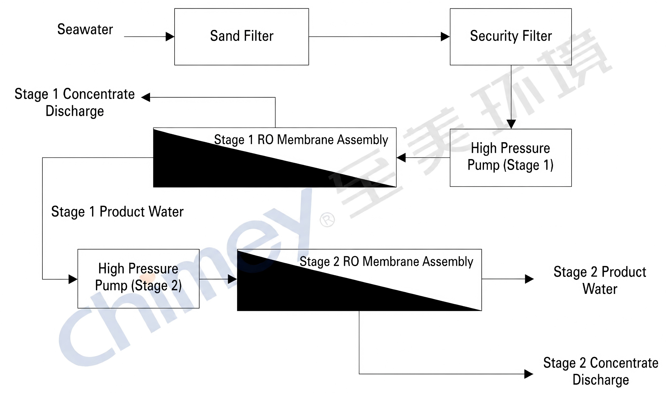 Process Flow Diagram of CM-CB-FST-Z Integrated RO Seawater Desalination System