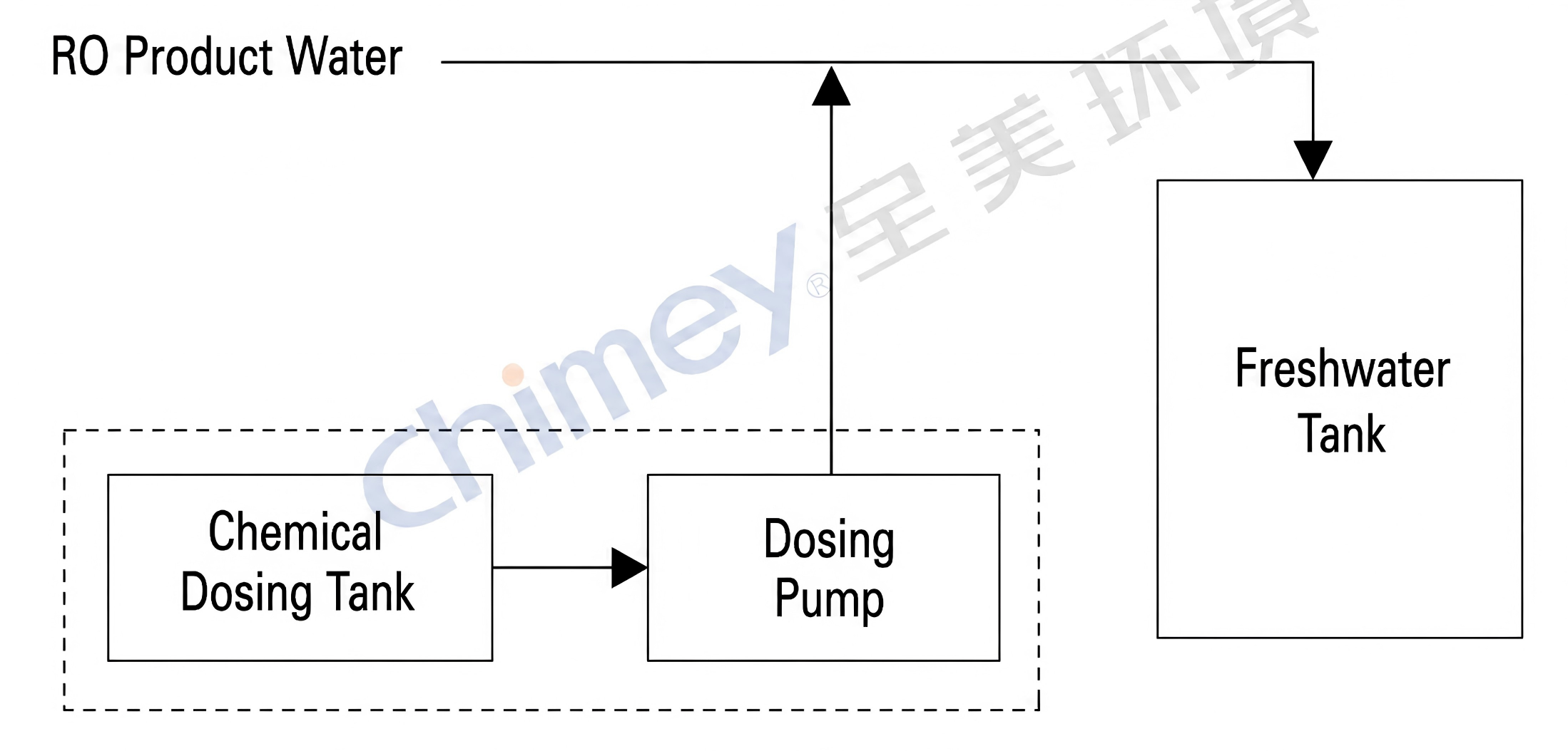 It is equipped with multiple safety features, including high/low liquid level alarms, anti-misdosing protection, and flow-based start/stop control, ensuring stable and coordinated operation with the RO desalination system.