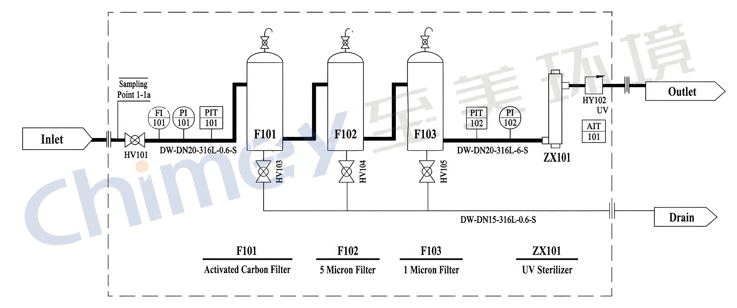 CM-ZDCL-I Drinking Water Terminal Treatment Unit – Process Flow Diagram
